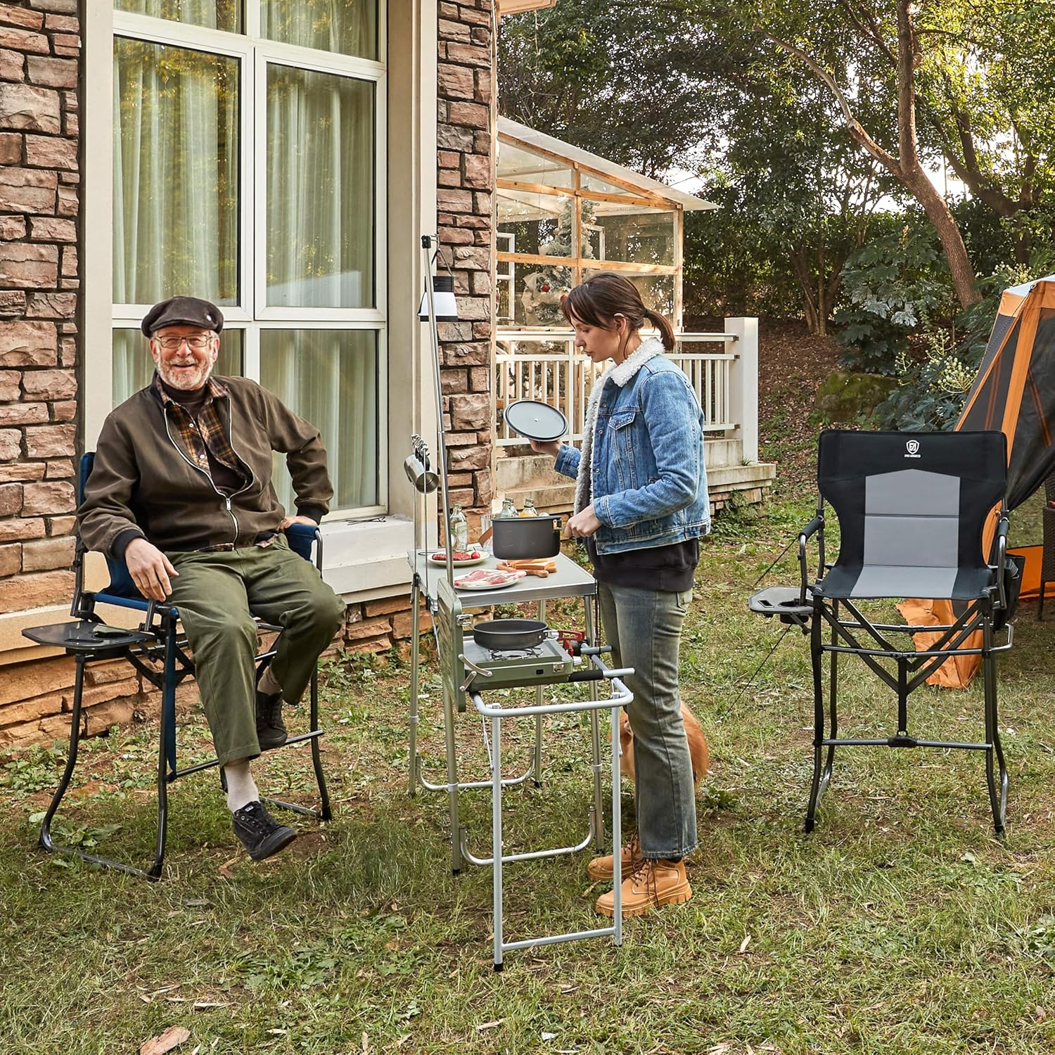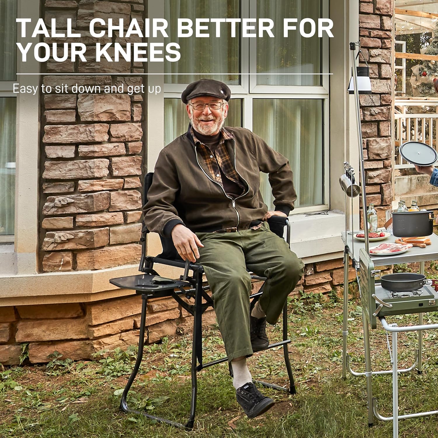 Introducing the EVER ADVANCED Portable Tall Folding Camping Chair – the perfect blend of comfort, convenience, and durability for all your outdoor adventures! Whether you’re a makeup artist on set, a sports enthusiast at a game, or showcasing your crafts at a show, this high foldable bar stool with a side table is your go-to seating solution.